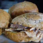 Pão biju com carne de porco desfiada e um molho que também pode ser picante. Há variações com queijo, o que pode deixar a iguaria ainda melhor.